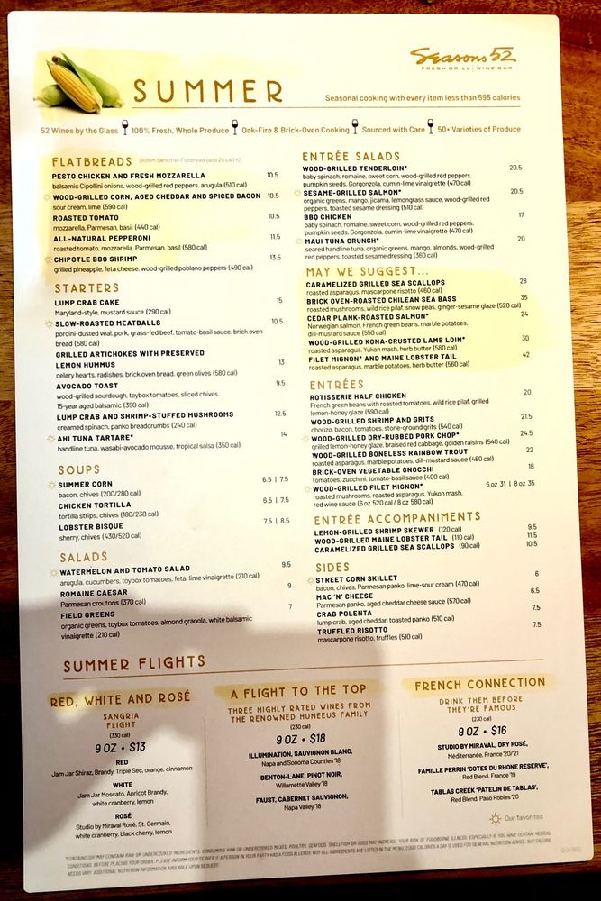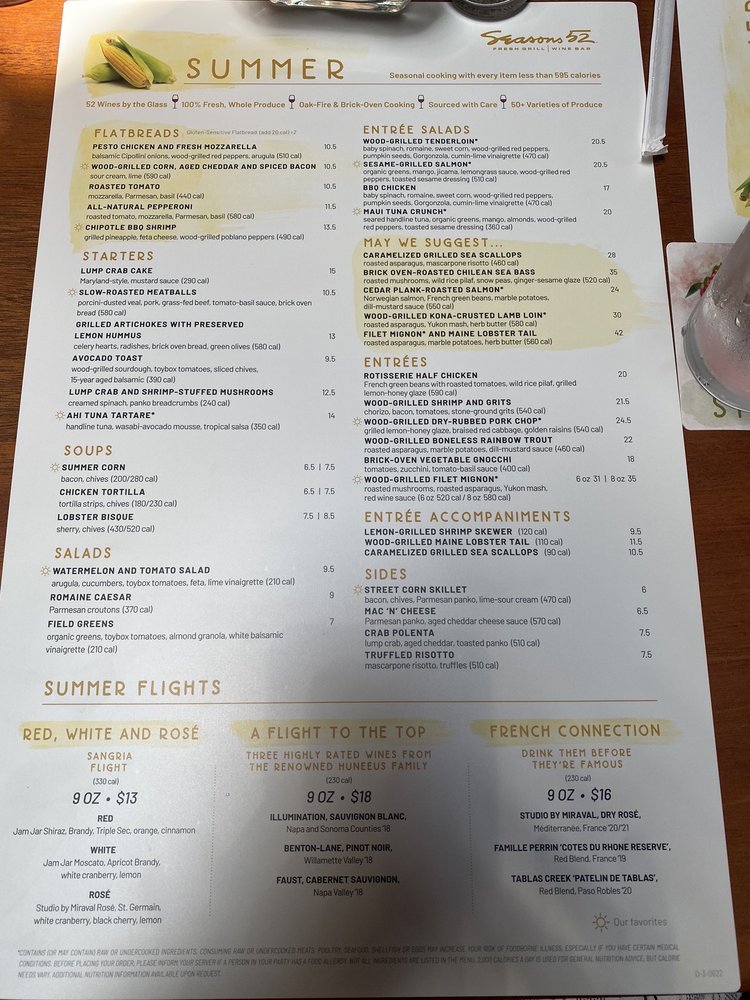 Seasons 52 FL Menu